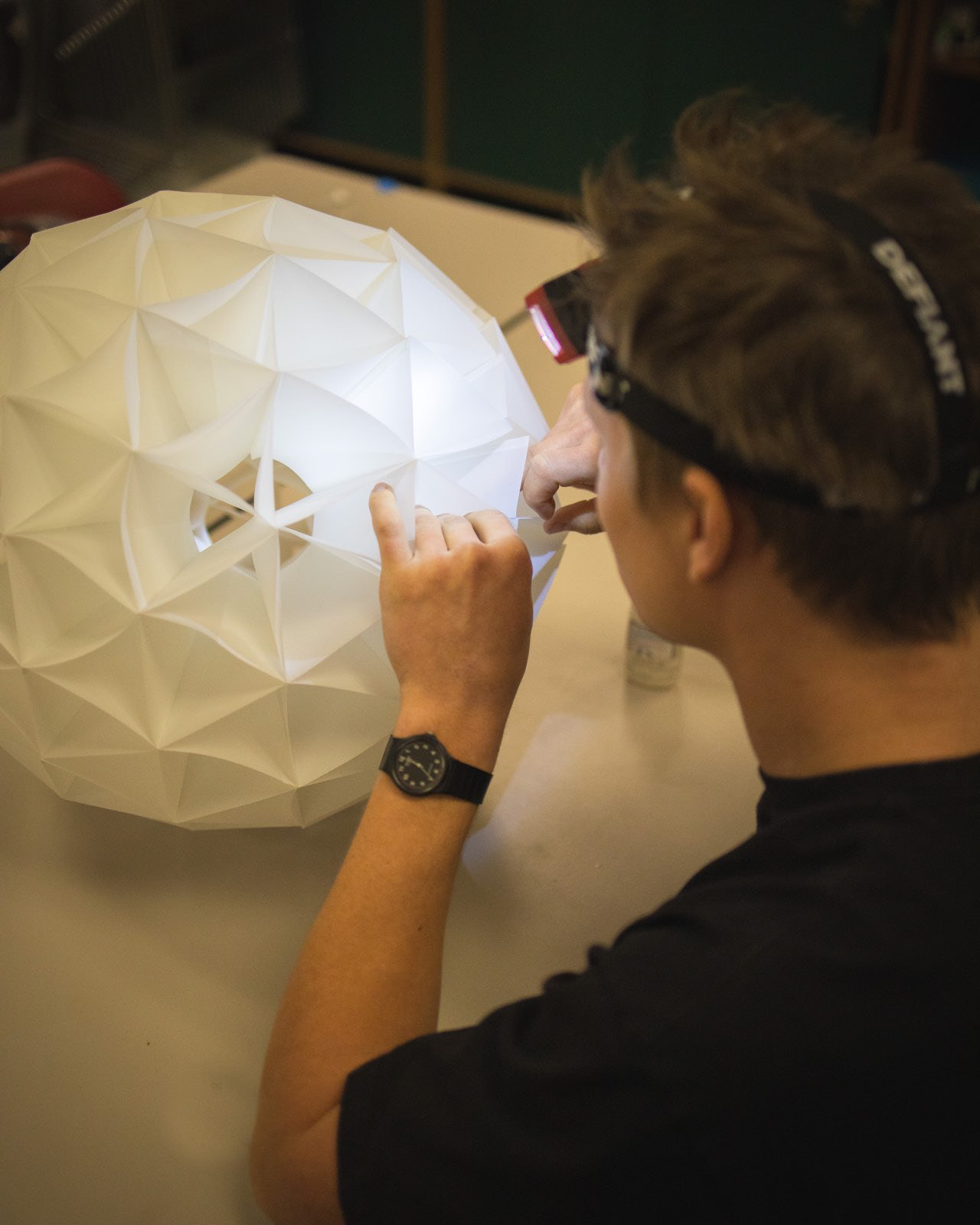 Design a pendent light using an IKEA bulb kit and 4 mill double frosted mylar